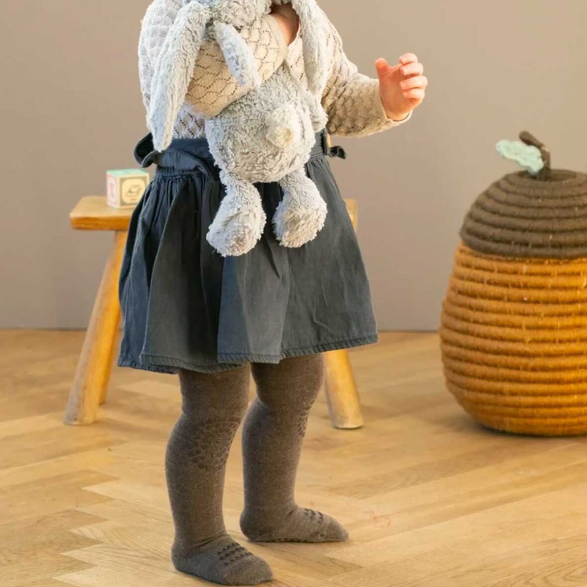 Kravle strømpebuskerne fra GoBabyGo er uundværlige, når dit barn skal i gang med at kravle og gå. Med de små gummidutter på knæene, under fødderne og ovenpå tæerne, er strømpebuskerne ekstra slidstærke og vil hjælpe dit barn med at stå bedre fast og opnå højere stabilitet, hvilket styrker barnets motorik, balance og selvsikkerhed. De er lavet i superwash uld med en bred ribkant, der garanterer god bevægelighed, og som føles behagelig på huden. Uld er temperaturregulerende og er derfor ideelt til det svingende, danske vejr.