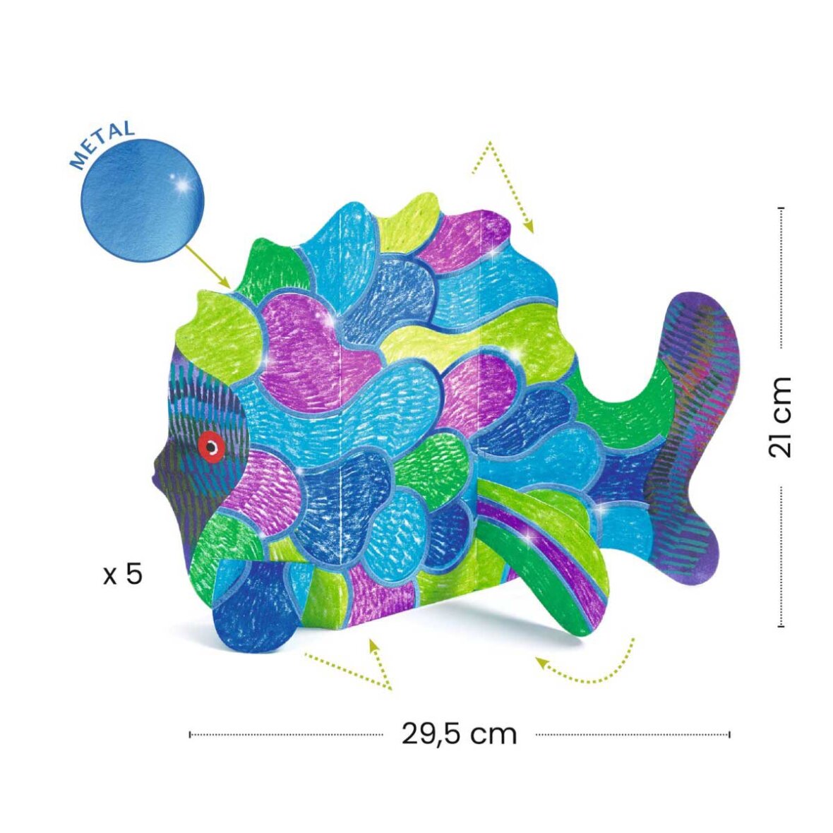 De 3 store fisk der måler 29,5 x 21 cm. skal farvelægges i flotte farver. Når du er færdig kan de store fisk stå op, så du kan have dem stående og pynte på dit værelse.