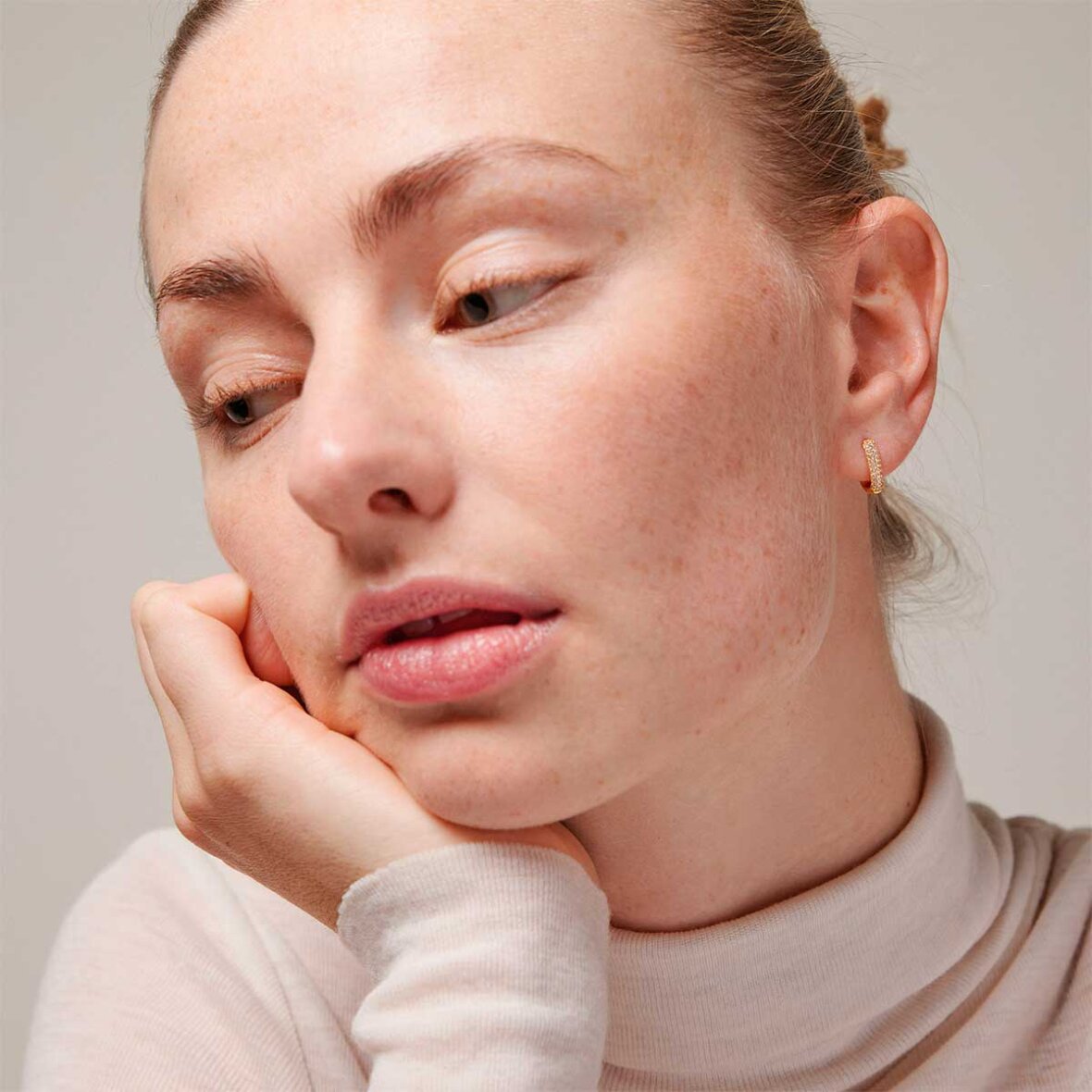 Sparkling square hoop øreringe fra Enamel Copenhagen. Deres sparkling square hoops er en serie af funklende, eksklusive hoops i en anderledes form, der giver en ellers sofistikeret hoop et råt og karakterfuldt udtryk.