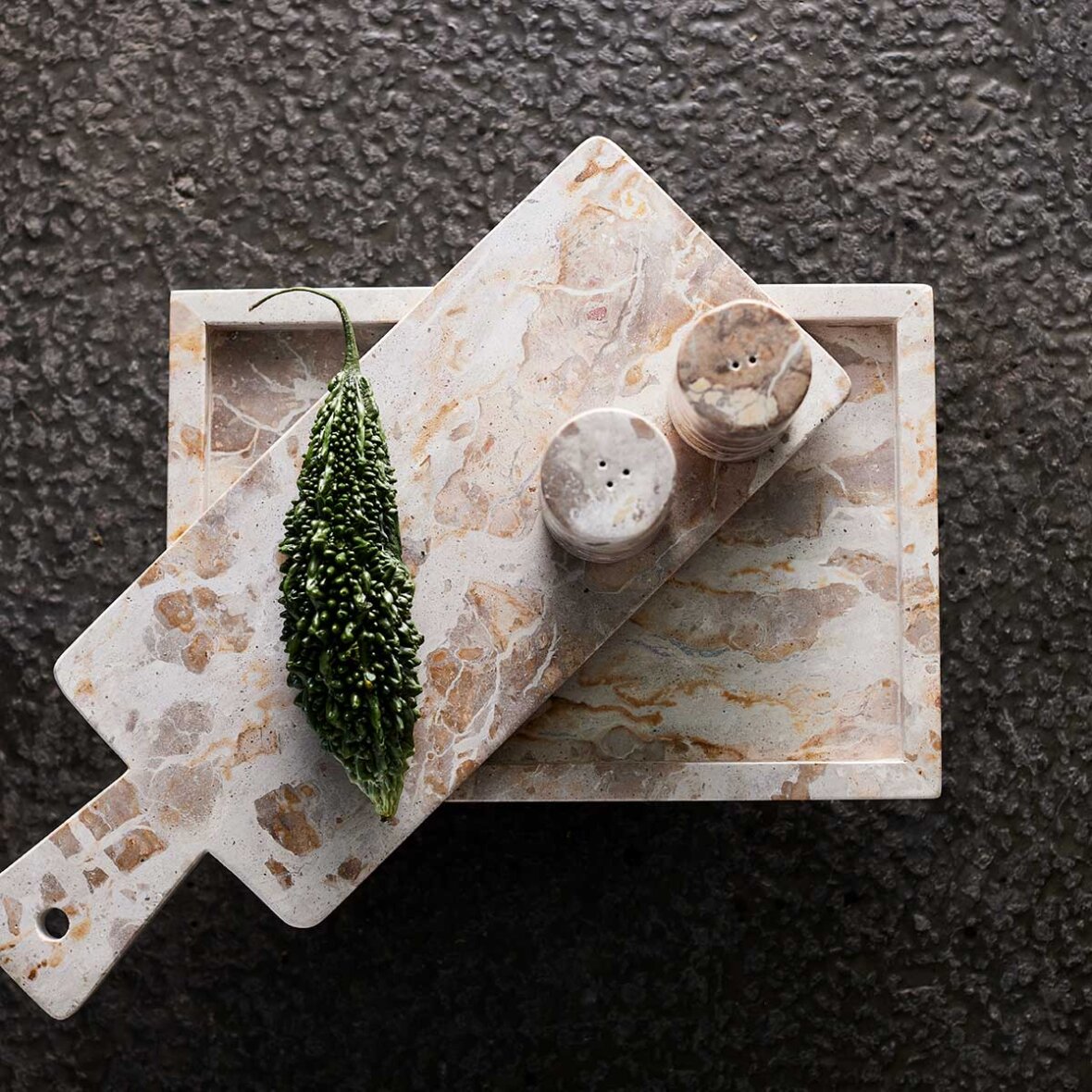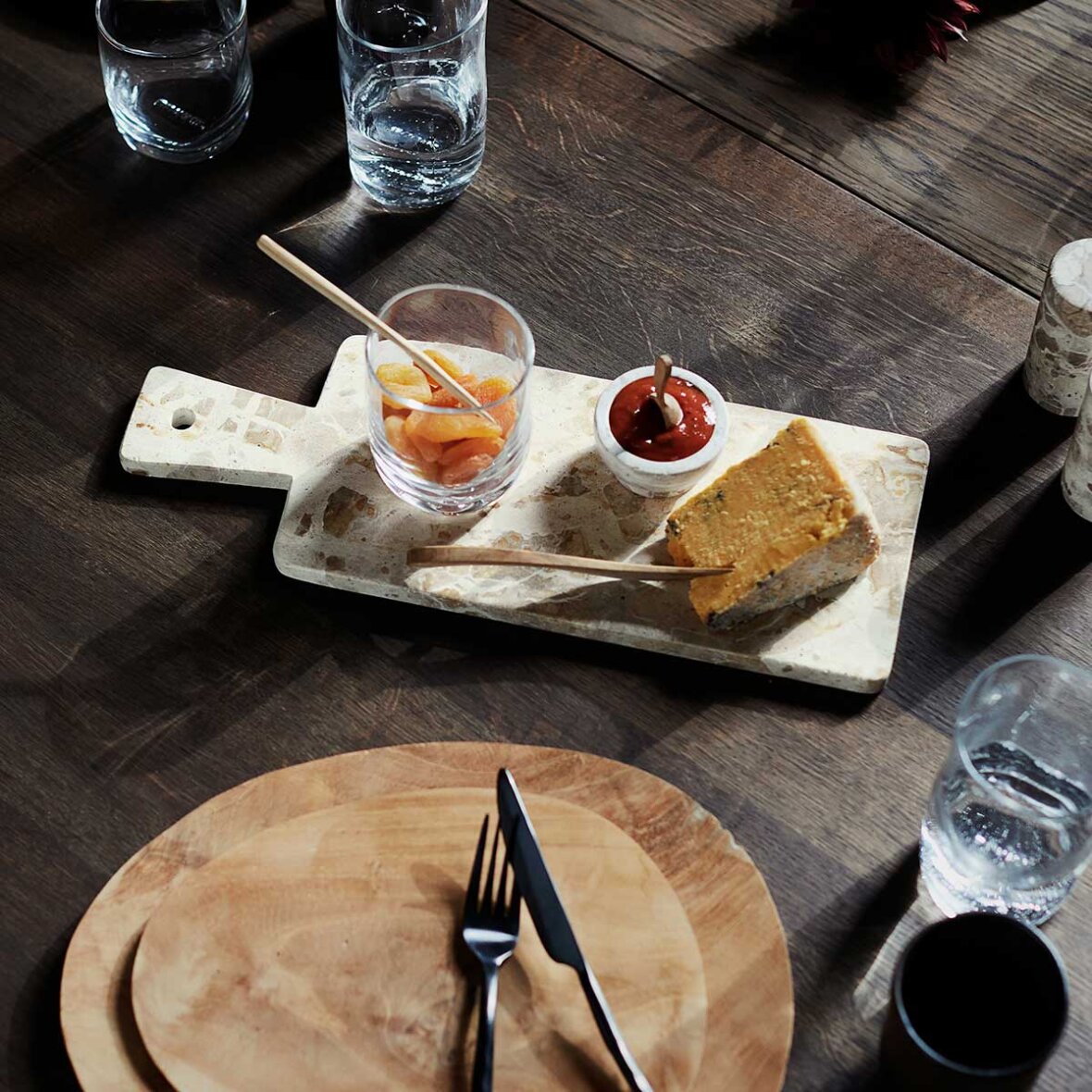 Tapas brættet er fremstillet af cremefarvet marmor. Den naturlige variation i farver og mønstre gør hvert Vita produkt unikt og skaber en smuk kontrast til de øvrige materialer i dit køkken.