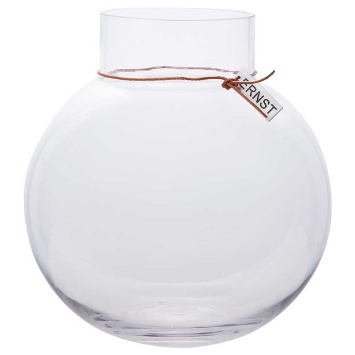 Rund glasvase fra Ernst. Afskårne blomster skaber liv og glæde i ethvert hjem. I ERNSTs populære runde vase med læderremme kan du skabe smukke blomsterarrangementer. Takket være størrelsen på vasen kan den også bruges som lanterne.
