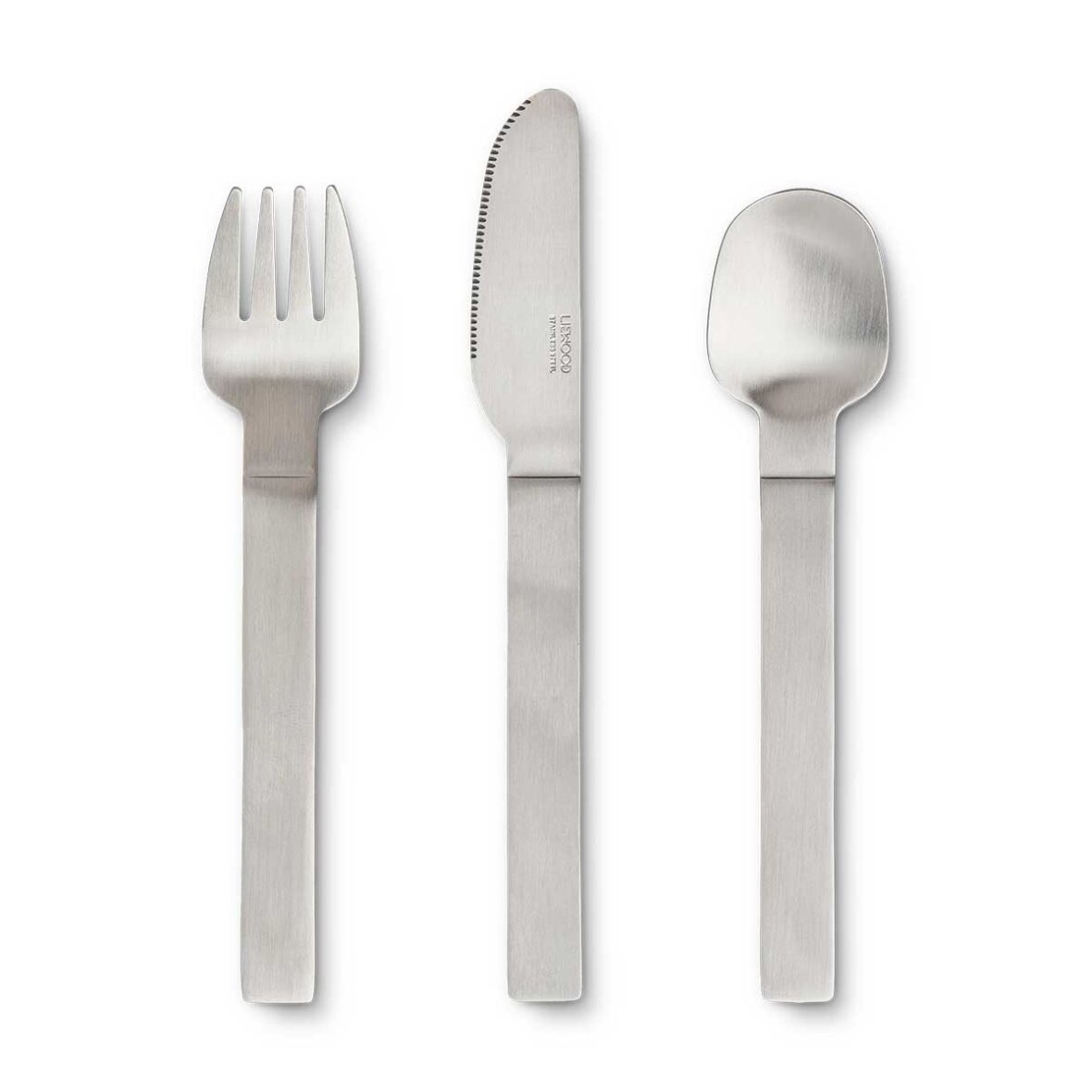 Colin junior bestik fra Liewood. Colin Junior bestiksættet i 3 dele er fremstillet i rustfrit stål og er til dem, der gerne vil spise som de voksne. Med diskrete farvenuancer at vælge imellem eller i massivt rustfrit stål passer de godt til den stilfulde borddækning og føles behagelige at holde på med deres bløde silikonegreb.