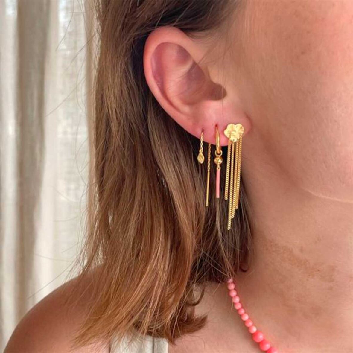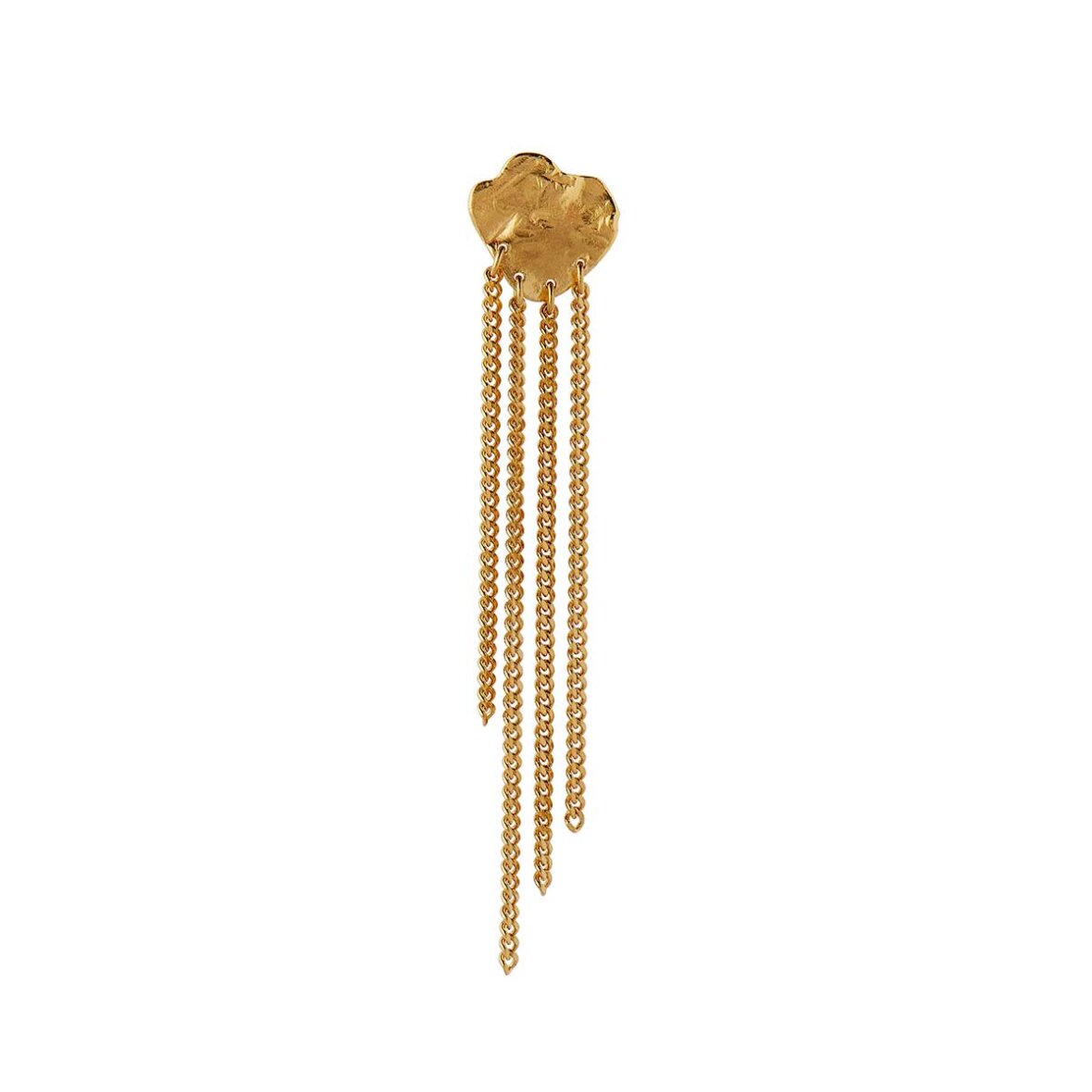 Beskrivelse: Ørering med flad og banket ørestik med fire dansende kæder hængende under for et livligt og cool look.