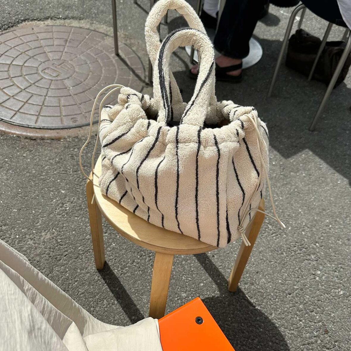 Naram Handbag fra BONGUSTA er designet med en blød, ustruktureret silhuet og er lavet i let frottéhåndklædestof og OEKO-TEX®-certificeret.