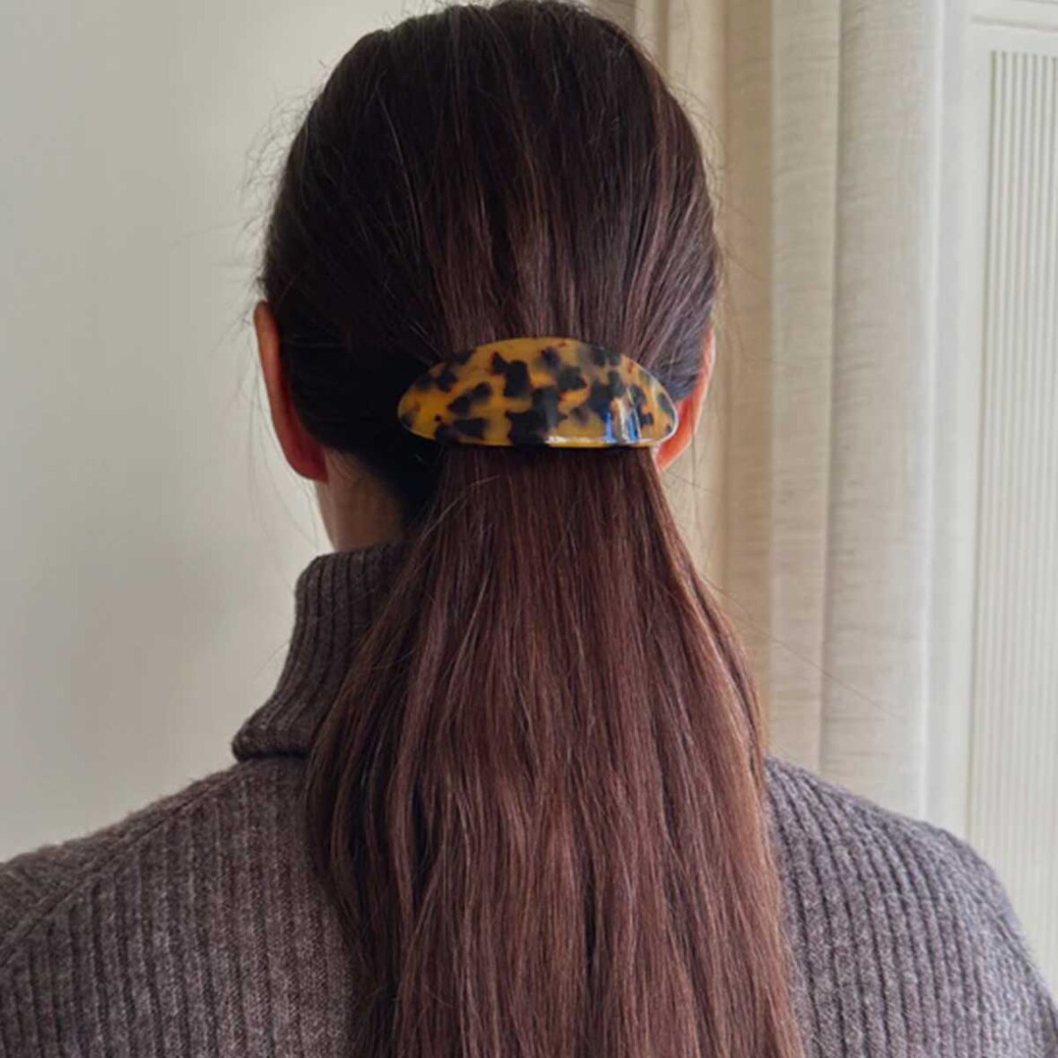 Med sin fine og minimalistiske æstetik tilføjer den ovale hårklemme ubesværet et strejf af elegance til både afslappede og formelle looks, hvilket gør den til en go-to accessory til hurtig og elegant hårstyling