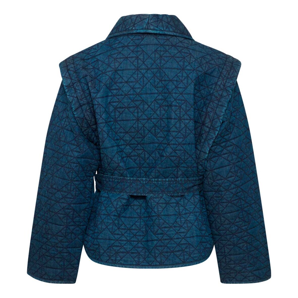 Jules jakke fra Atelier Reve. Her får du en flot mørkeblå, kort, baggy jakke. Denne jakke er med lange ærmer, med bindebånd i taljen, og den kan lukkes med to knapper på fronten.
