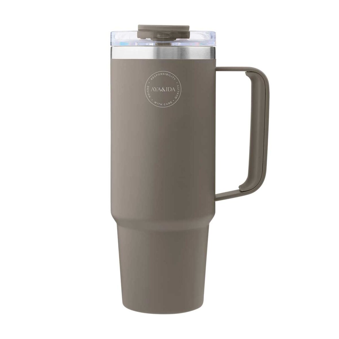 AYA&IDA THERMO CUP WITH STRAW, som holder koldt i 12 timer og iced i 36 timer, er en rummelig to-go kop med sugerør og håndtag, der sikrer dit væskeindtag, når du er på farten.
