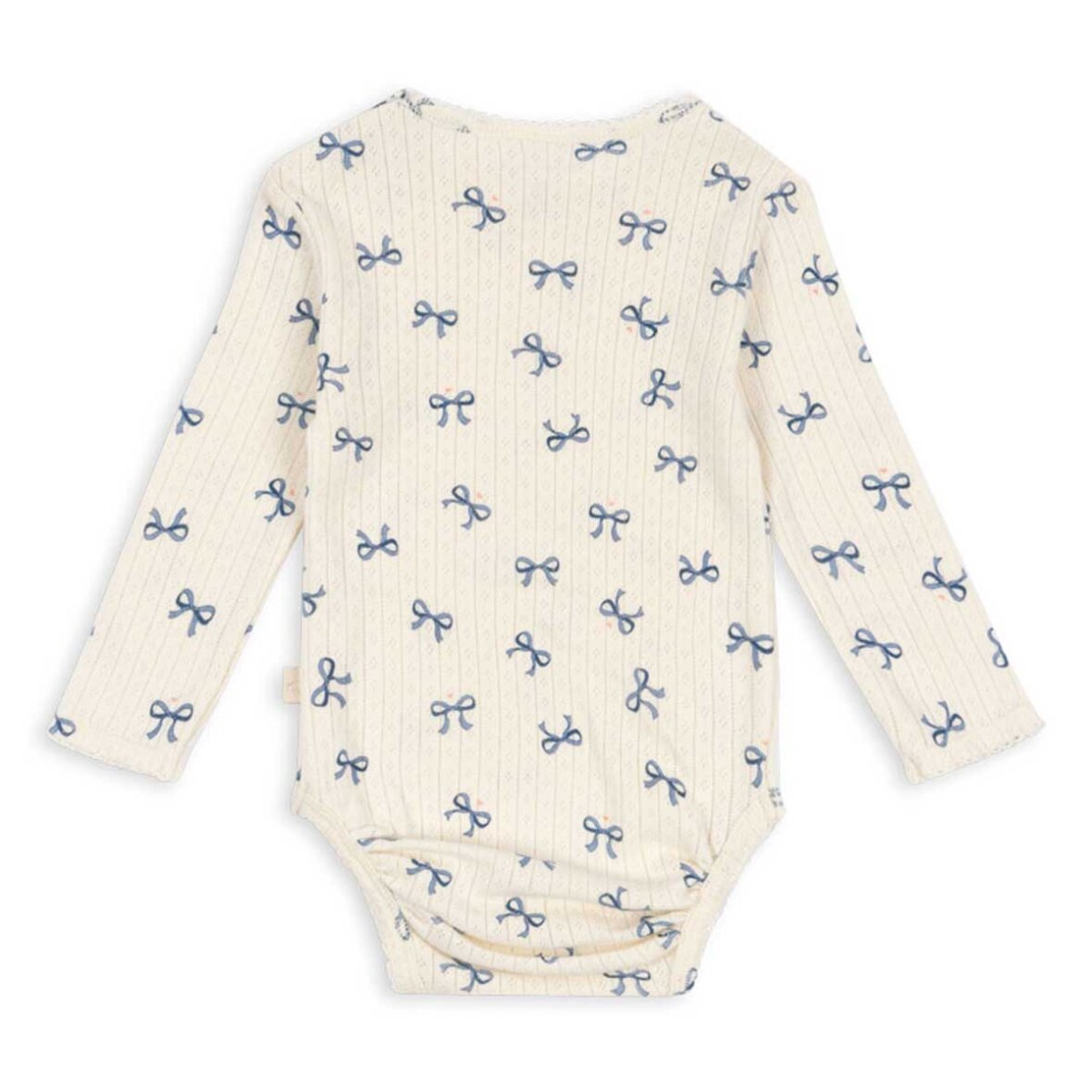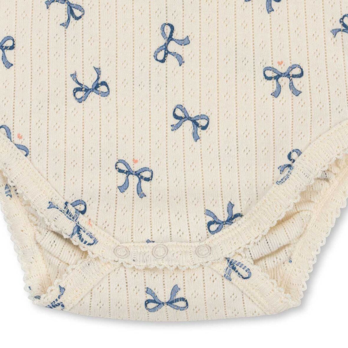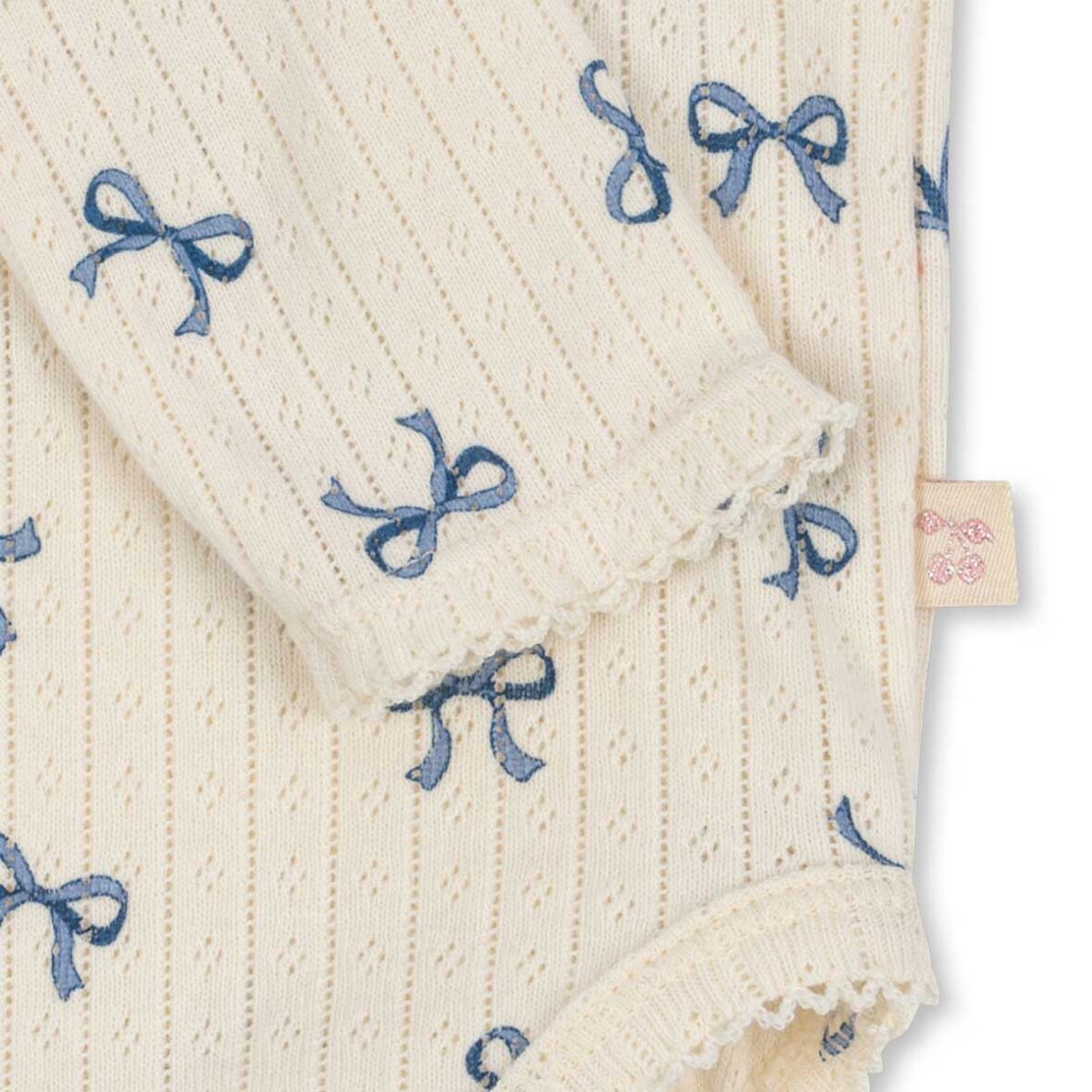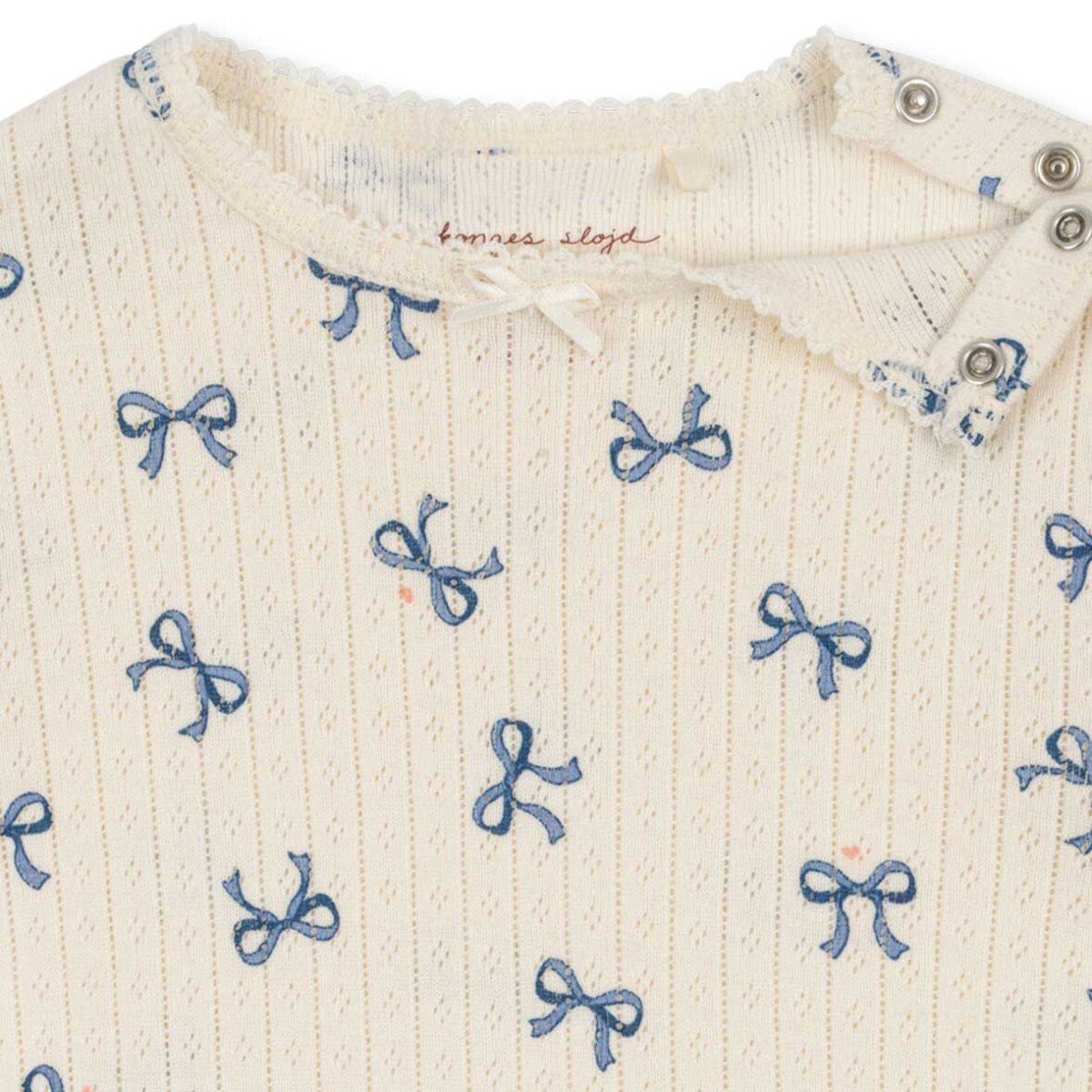 Blød bodystocking i bomuld med dekorativt hulmønster. Med praktiske trykknapper i skridtet.