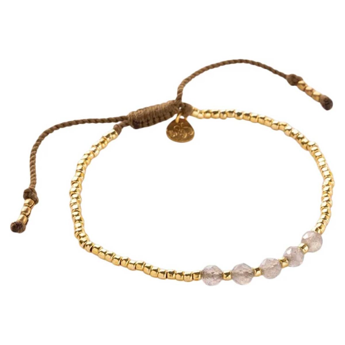 Oplev magien med dette justerbare armbånd fra deres Classics-kollektion. Armbåndet har en praktisk justerbar knude, der passer perfekt til ethvert håndled. De funklende guldfarvede glasperler og de 5 smukt slebne labradorit-sten gør armbåndet til et elegant og tidløst tilbehør, der passer til enhver lejlighed.