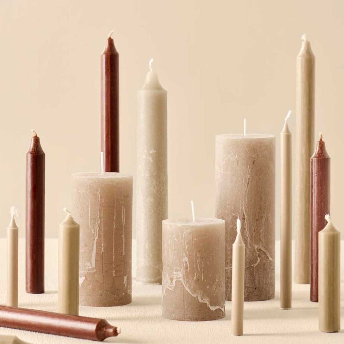 Ib Laursens rustiklys-serie fås både i neutrale farver, men også i sæsonens mange, trendige farver samt i flere forskellige størrelser - så her hos os kan du finde det perfekte lys til enhver anledning.