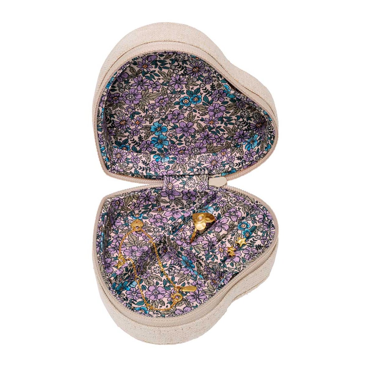 Med Maanestens hjerteformede smykkeskrin kan du tage dine dyrebare smykker med dig elegant og sikkert - uanset om du er hjemme eller ude.
