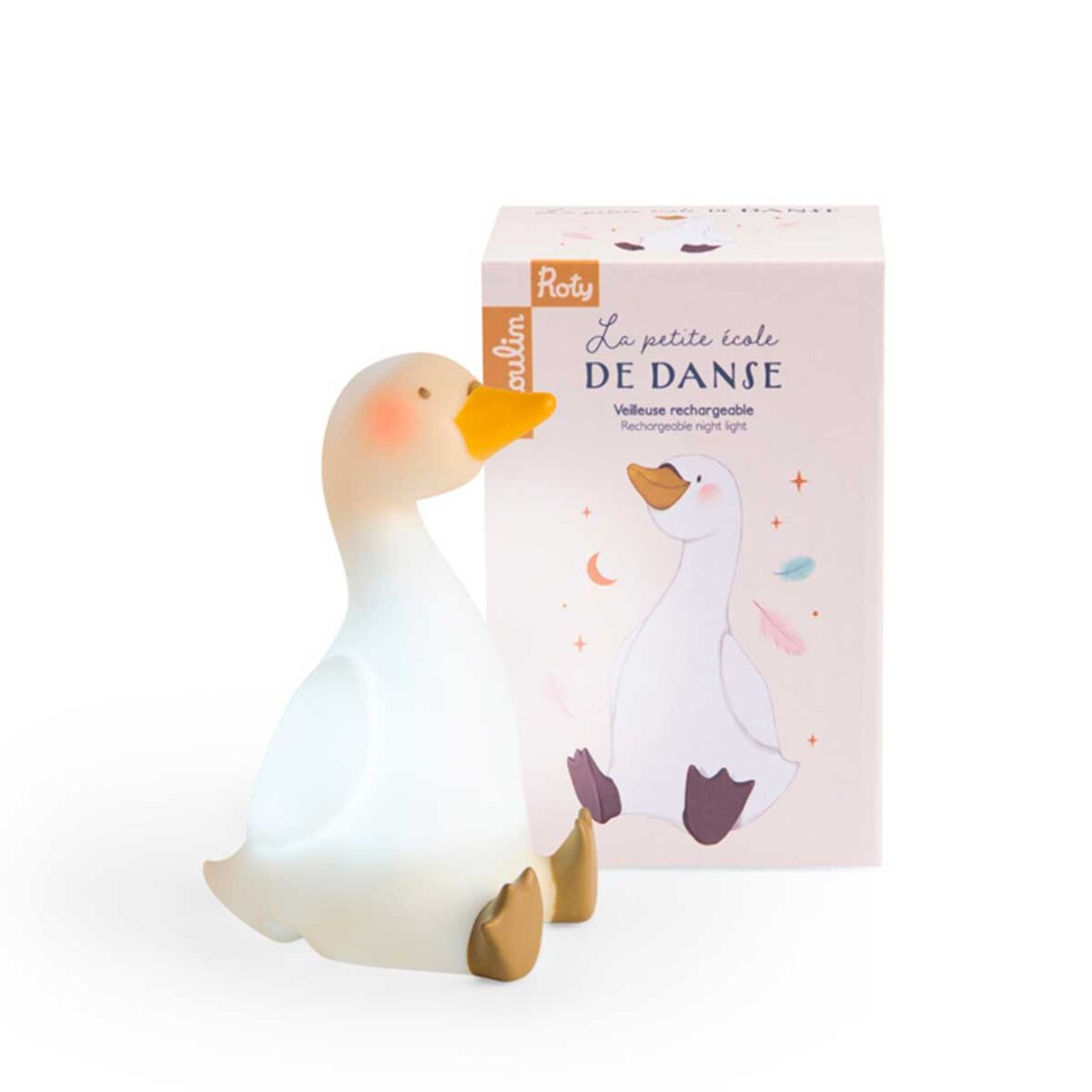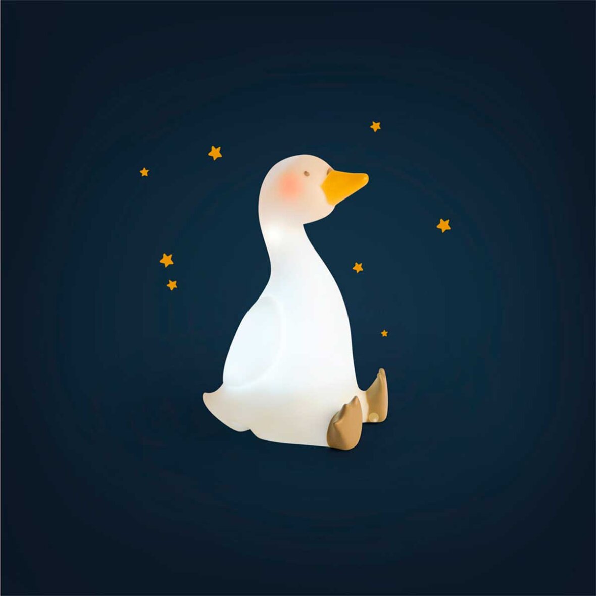 Denne lille natlampe er designet som en svaneunge og giver et behageligt, svagt lys.