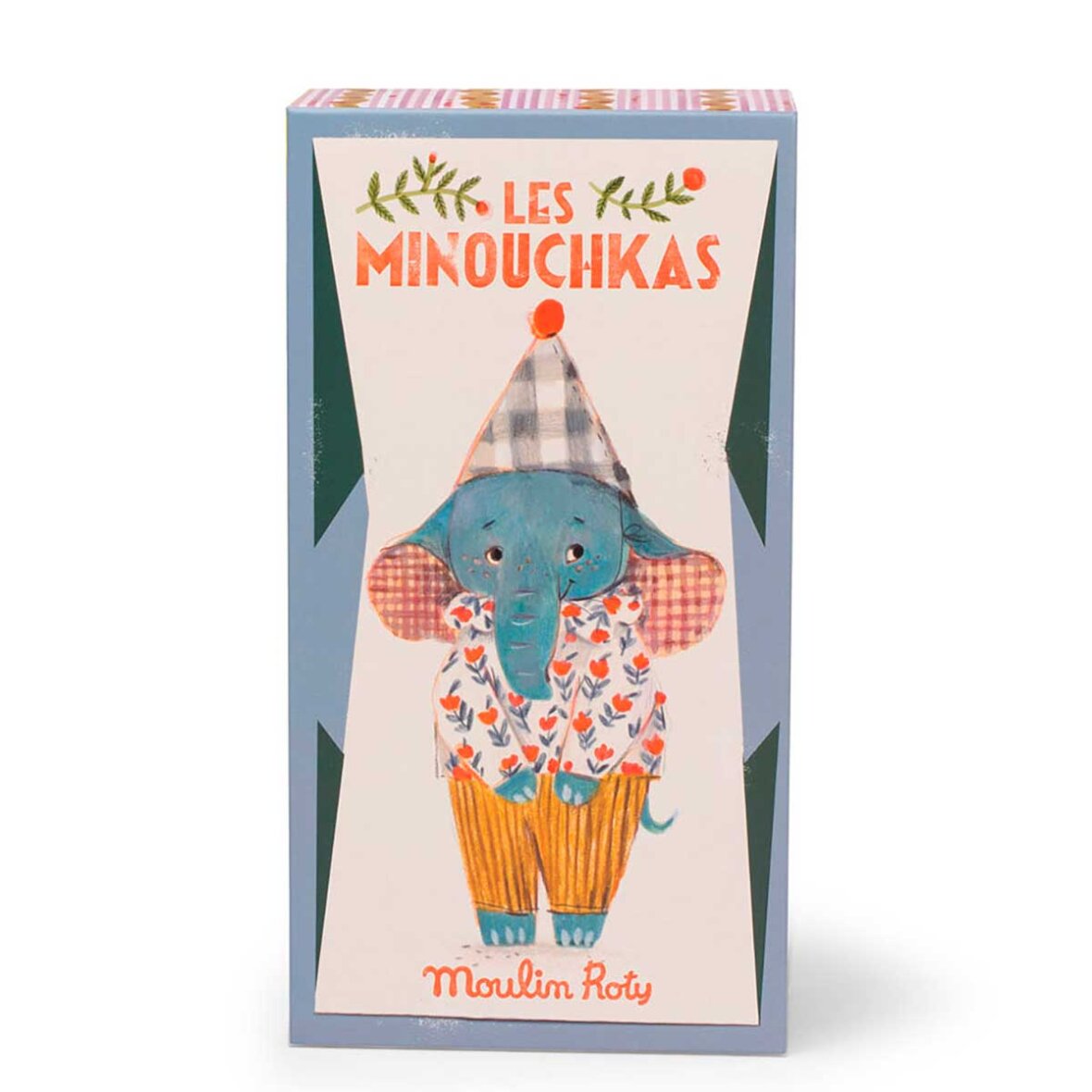 Elefanten Pablo er et charmerende tøjdyr med en spids hat, smart skjorte og ruskindsbukser.