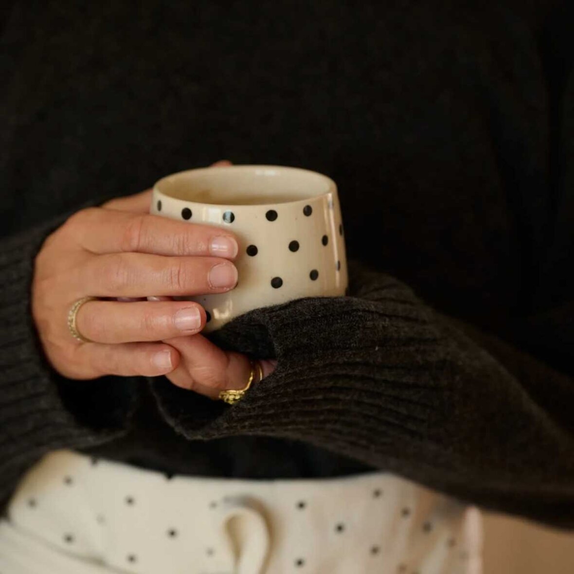 Keramisk kop, glaseret med de klassiske signatur prikker.